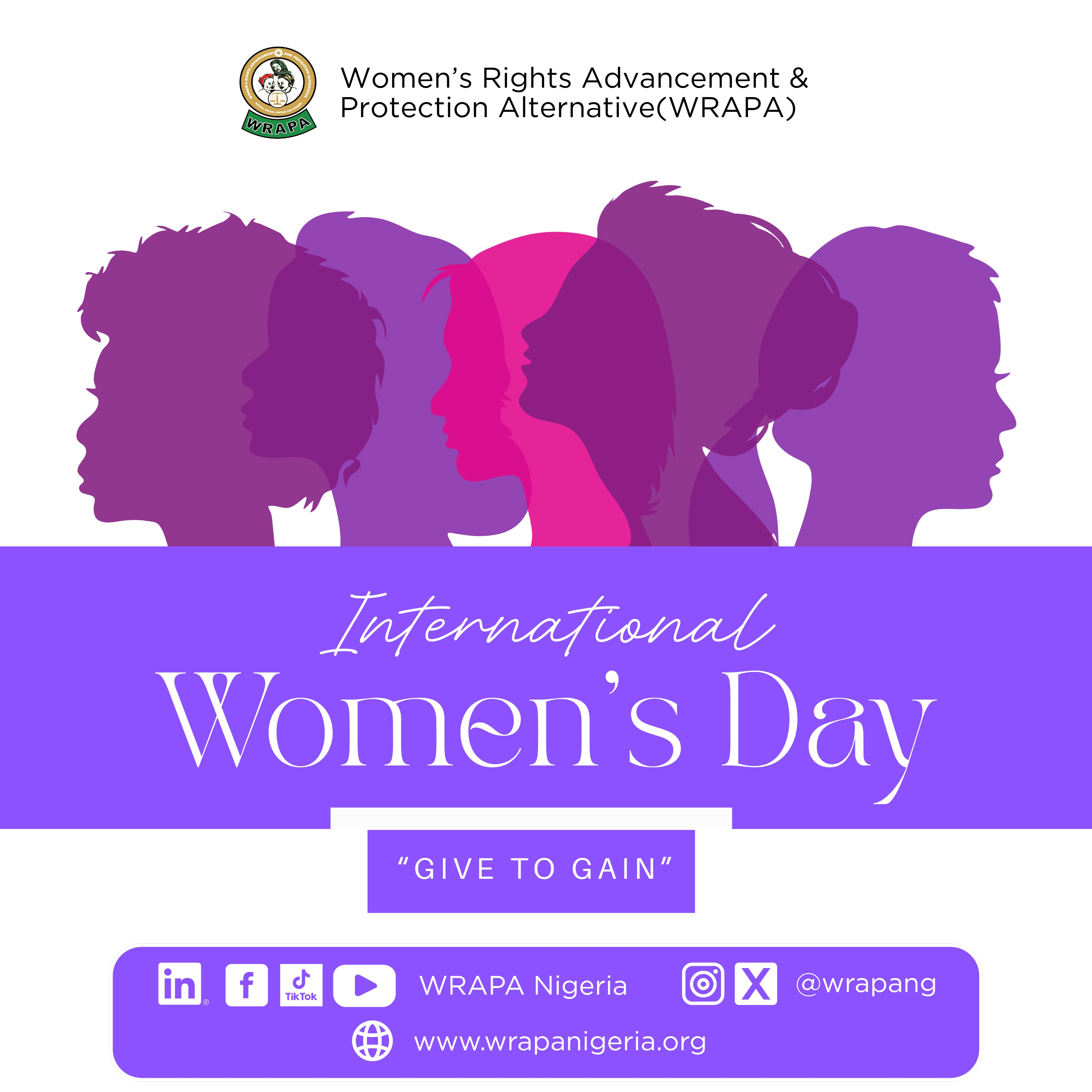Established in 1999, the organisation seeks to advance and protect the rights of women as provided by national laws and policies, regional and international treaties and agreement through an integrated approach that entrenches respect for the human dignity of the woman as well as her inclusion in decisions that affect her life and the development of her community.